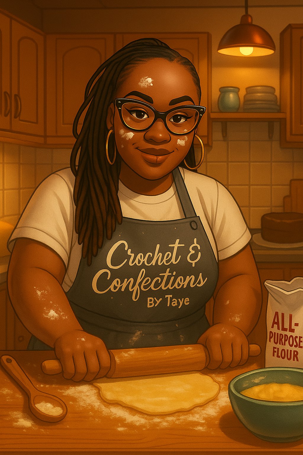 Every bite tells a story of comfort, care, and creativity. At Crochet & Confections by Taye, I believe the best desserts come straight from the heart — crafted by hand, baked fresh, and made to bring people together. From my soft, melt-in-your-mouth cookies to decadent cakes and signature sweet bites, each treat is made with premium ingredients and a whole lot of love.